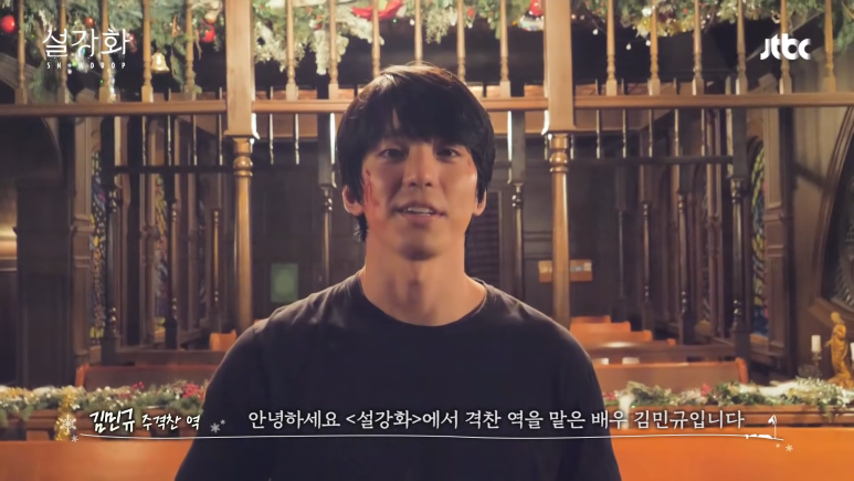 안녕하세요 설강화에서 격찬 역을 맡은 배우 김민규 입니다 이제 설강화의 대장정이 드디어 막을 내렸는데요 격찬이라는캐릭터를 연기해서 굉장히 행복한 시간이었고 색다른 도전 이었는데 모든 배우들과 모든 스탭 분들이 정말 최고의 환경을 만들어 주셔서 재미있고 놀듯이 촬영을잘 마쳤던 것 같습니다 원래 시원섭섭하다 하는데 섭섭한 마음이 좀 더 크고요 좋은 점은 머리를 자를 수 있다는 게 굉장히 좋습니다 정말 행복한 시간이었고 그동안 감사했습니다 수호 형 그리고 강무 형, 응철이 형 이 세명한테 정말 고맙다는 말 하고 싶고요 격찬이라는 캐릭터를 만드는데 있어서 굉장히 많은 도움을 주셨거든요 그 세분이 우리 설강화 그동안 많은 사랑과 관심 가져주셔서 너무 감사드리구요 시청해주셔서 감사합니다 저 배우 김민규도 앞으로도 기대 많이 해주세요 감사합니다
