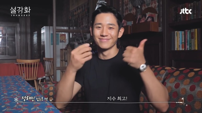 정해인 임수호 역 여러분 안녕하세요 임수호 역을 맡은 배우정해인입니다. 이제 마지막 촬영날이고요 오늘은 이제는 설강화를 떠나보내야 하는 그런 시간이 왔어요 어느 때보다도 뭐라고 표현할 수 없을 정도로 지금 마음이 좀 복잡한데 마지막 신 을 찍어 봐야지 알 것 같습니다 작품이 끝나면 보통 후련하기 마련인데 시원섭섭하다 할까요 제가 유독 이 작품은 섭섭하고 아쉽고 끝나는 것에 대해서 현재로 받아들여야 되는데 아직까지 안 되고 있어요 그만큼 가장 저한테 힘들었던 즐거웠던 모두가 같이 함께 하면서 기억에 만남이 작품이 될 것 같아요 설강화 라는 작품을 함께 하게 돼서 재미있었고 더할나위없이 좋았다는 말을 하고 싶어요 전 많이 놀랐어요 현장에서 영로한테 연기를 임하는 자세나 스탭분들한테 대하는 태도 늘 긍정적이고 밝은 에너지 듯 요가 감독님의 디렉션을 찰떡같이 안들어서 바로바로 알아들어서 보여주는 어떤 순발력과 능력애 먾아 놀랐어요 감독님한테 제가 꼭 드리고 싶은 말씀이 있는데 지금까지 했던 작품들을 통틀어서 제 스스로를 가장 많이 의심한 작품이었어요 제가 한 고민들이맞는건지 이렇게 표현 하는게 맞는건지 에 대한 끊임없는 그런 어떤 물음표가 있었는데 감독님께서 저의 어떤 중심을 잘 잡아 주셨던 거 같아요 그래서 감독님만 믿고 갈수있었어요 끝으로 우리 시청자 여러분이 그동안 설강화 시청해 주시고 애정해 주시고 관심가져 주시고 기다려 주시고 보살펴 주시고 응원해 주시고 서포트 해 주시고 정말 정말 감사드립니다 촬영 기간도 길었고 촬영이 끝나고 드라마가 오픈 데까지도 참 긴 시간이 걸렸어요 기다려 주셔서 감사드리고요 뜨거운 애정과 사랑을 주셔서 정말 감사드립니다.